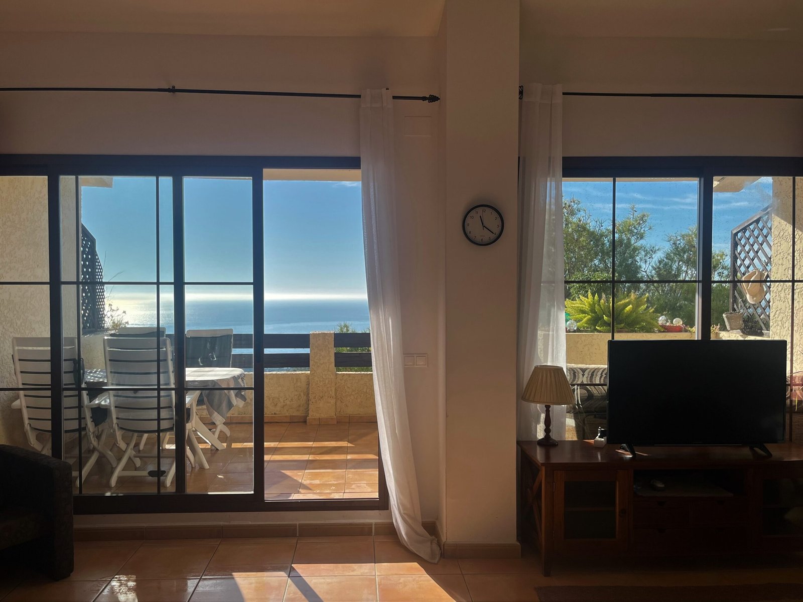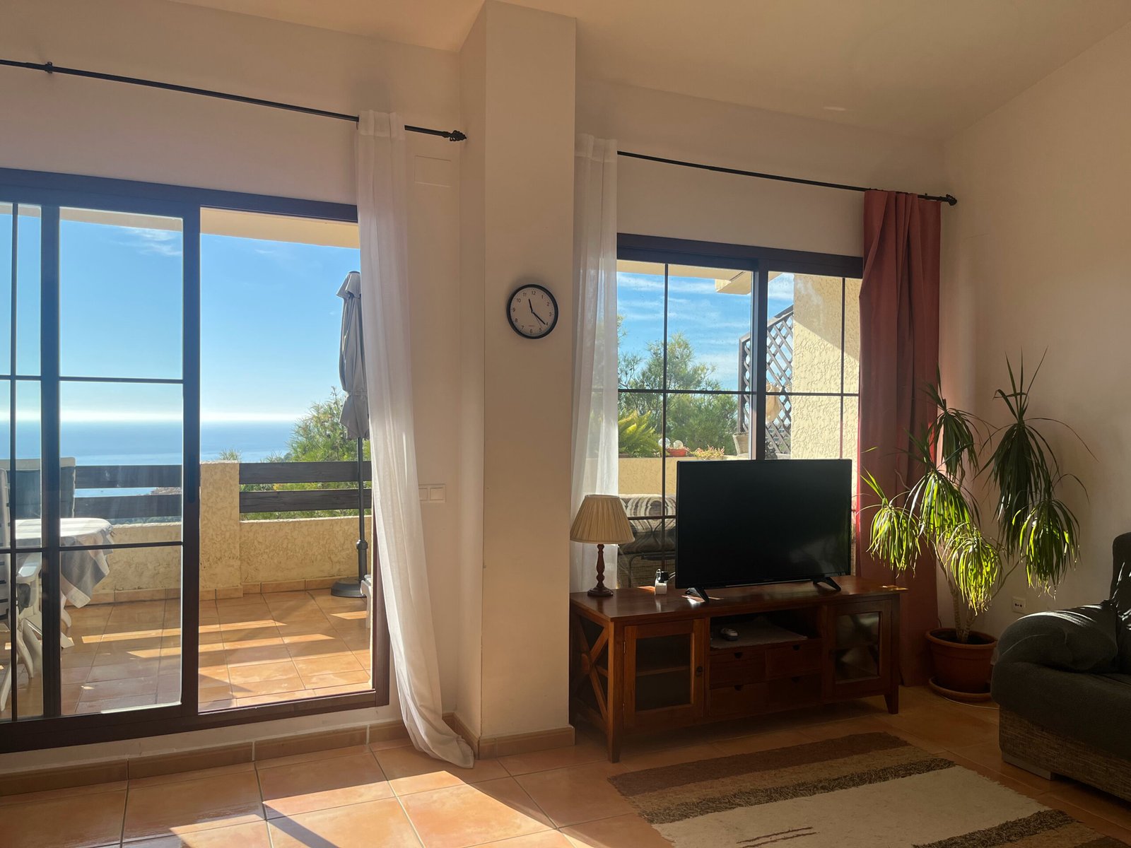 Aparca junto a la entrada y accede a la vivienda. Desde el recibidor, los ventanales del salón conectan con la terraza, ofreciendo vistas al mar, amplitud, techos altos y gran luminosidad.